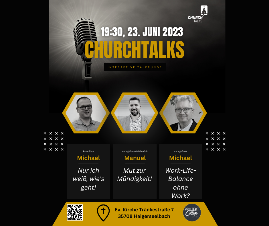 Merkt euch den Termin vor und seid dabei, wenn ChurchTalks zum ersten Mal startet! Weitere Informationen findet ihr auf unserer Website unter www.projekt-college.de/churchtalks